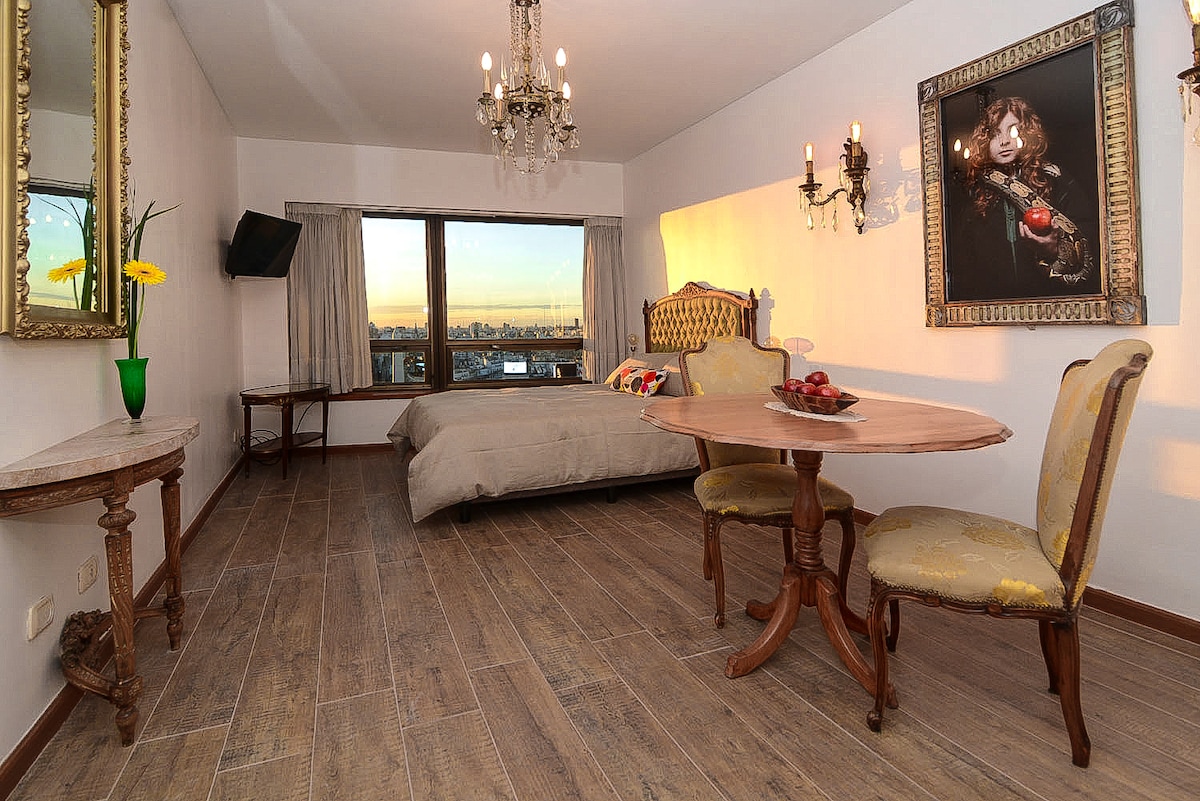 Belo apartamento localizado no coração de Buenos Aires, na famosa Av. Corrientes e a 150 m da Av. 9 de Julio. Com uma vista deslumbrante do 22º andar de toda a cidade. Imerso na cultura de Buenos Aires (perto dos teatros, restaurantes e principais pontos turísticos da BA), é acessado por todos os meios de transporte ( metrô, trem, ônibus, carro). É decorado no estilo Franco-Porteño da década de 1930. Restaurado ao novo com muito amor.