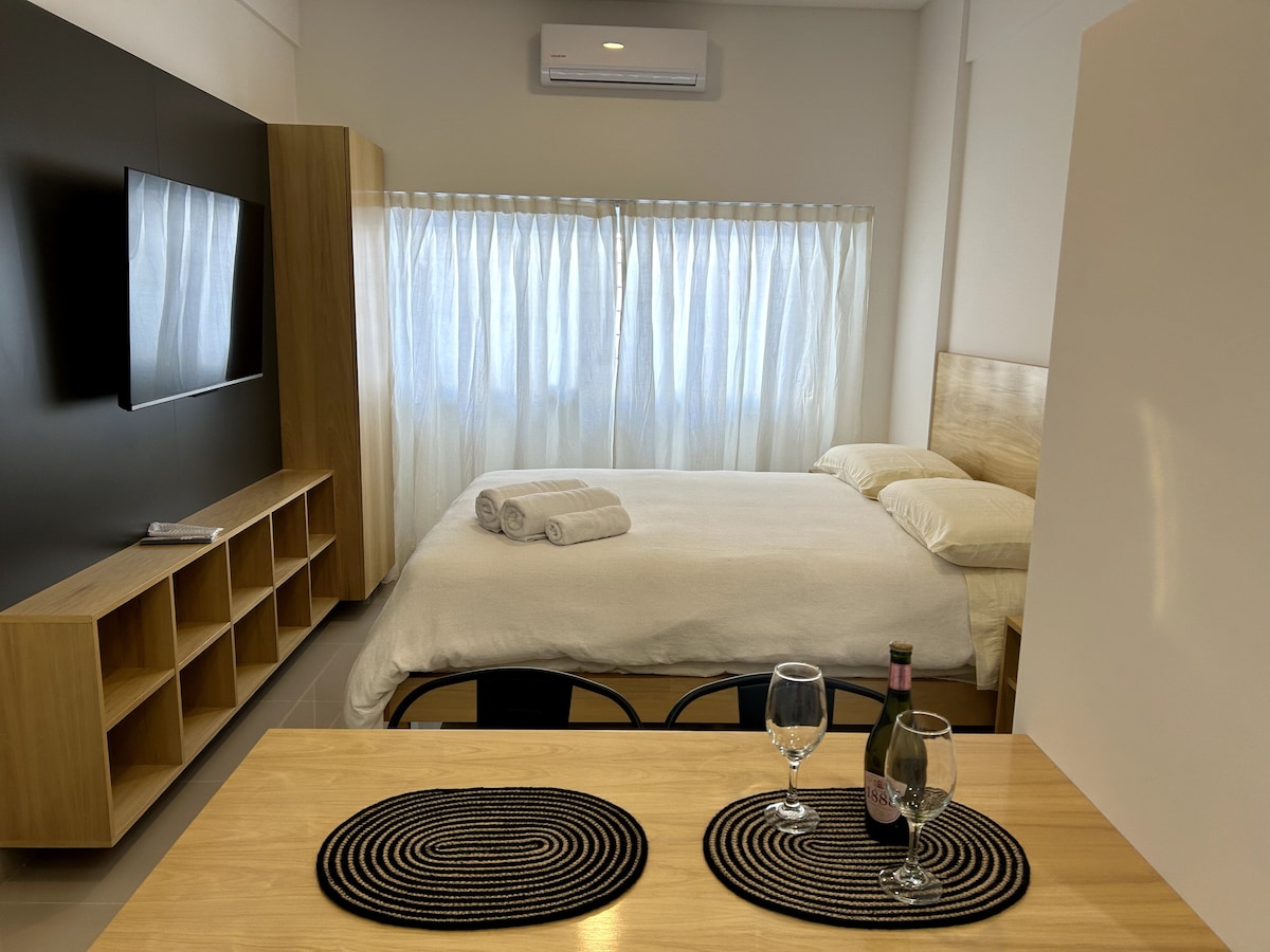 Vivencie Puerto Madero, uma das áreas mais exclusivas de Buenos Aires. Este moderno estúdio é perfeito para casais ou viajantes solitários, com cama confortável, cozinha equipada, banheiro completo e ar-condicionado. Aproveite a varanda com vista para as piscinas do complexo. Com Wi-Fi e localização privilegiada, você estará perto da Reserva Ecológica, da Puente de la Mujer e de uma variedade de restaurantes e atrações. Um espaço elegante, tranquilo e central no coração da cidade.