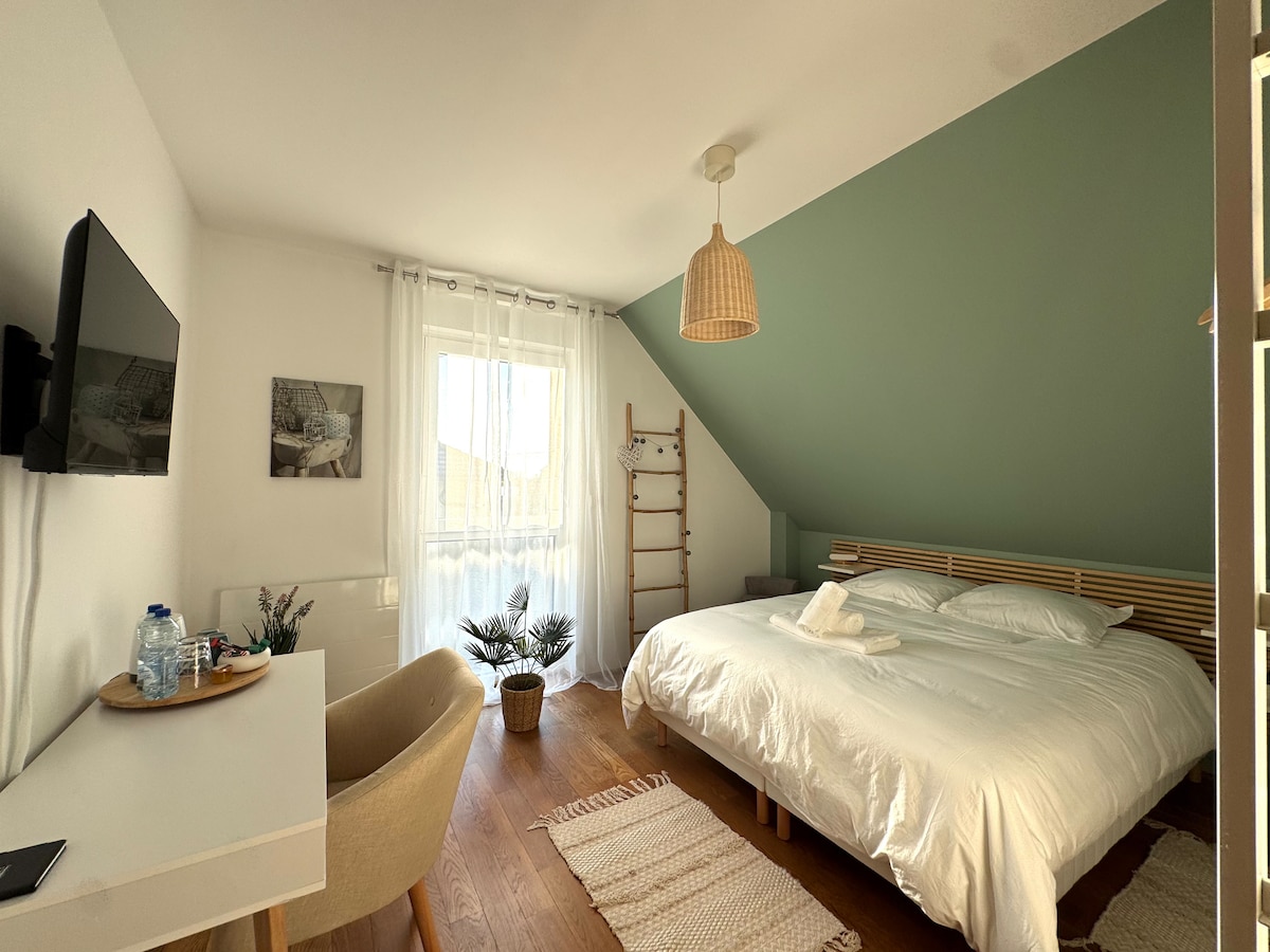 ⭐ La Palmeraie & Private SPA – Jacuzzi, Hammam, Sauna - Free parking Unique in Strasbourg! La Palmeraie: A spacious suite with a 30m² terrace & 100% private access for 2 hours/day to the wellness SPA area (Jacuzzi, hammam, sauna), included daily during your stay. Just 15 minutes from Strasbourg train station and 2 minutes from the European Business Area, enjoy a stay combining modern comfort, oriental charm, and absolute relaxation.