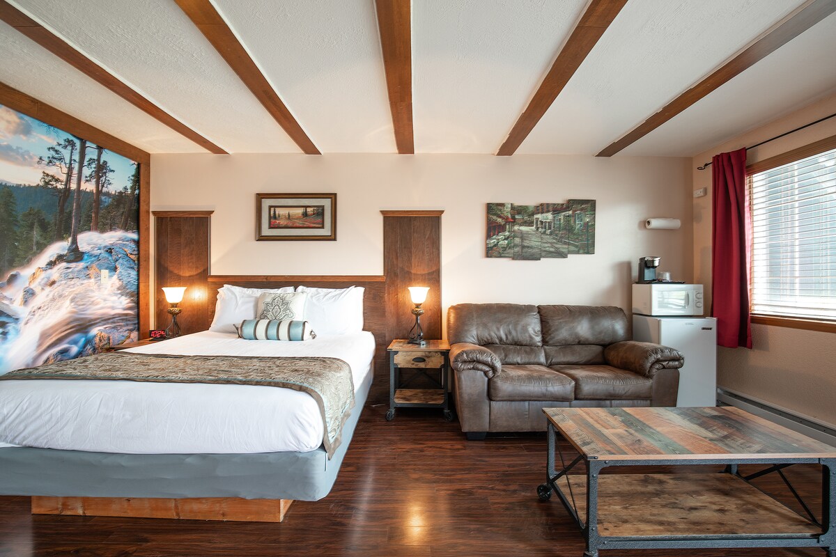 Você vai adorar a decoração elegante deste charmoso motel. Recém remodelado, limpo e aconchegante. Quarto Queen de nível superior com sofá futon. Wi-fi complementar para todos os hóspedes. Quarto com nova cama queen size aconchegante, chuveiro com box, frigobar, micro-ondas, TV, água engarrafada gratuita e café premiado. Quarto adequado para animais de estimação. (Taxa de animais de estimação a ser paga ao motel) Confira-nos online para obter comentários e informações atualizadas. A taxa para animais de estimação é de $ 30 por animal de estimação. Máximo de 1 animal de estimação por quarto, a menos que aprovado pela administração