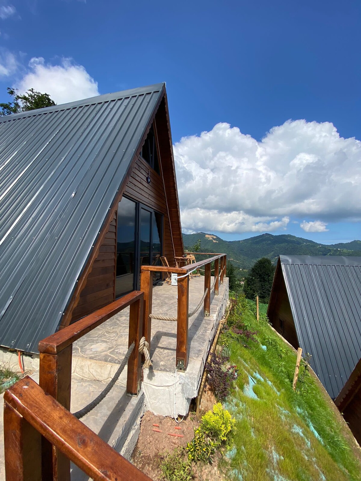 Experimente experiências inesquecíveis neste espaço único e adequado para famílias. Uma vista magnífica onde você pode ver as montanhas, o lago e o mar a partir da colina predominante da montanha. Casas de bangalô elegantes com banheiro de cozinha de quarto, banheiro, sala de estar e lareira no interior.