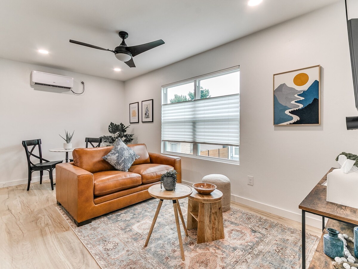 Bem-vindo ao nosso apartamento de 1 quarto totalmente renovado com uma cama king size e banheiro espaçoso com uma penteadeira dupla. Localizado na histórica OKC, a poucos passos do vibrante Plaza District, com mais de 50 lojas, bares, cafés e restaurantes. Desfrute de acesso rápido ao centro da cidade (8 minutos), aeroporto (16 minutos), Paseo Arts District (6 minutos) e Uptown 23rd (5 minutos). Experimente conforto moderno e comodidade neste elegante retiro urbano. Filtros de ar HEPA e SmartTVs, travesseiros de penas e bar de café/mini-frigobar e micro-ondas!