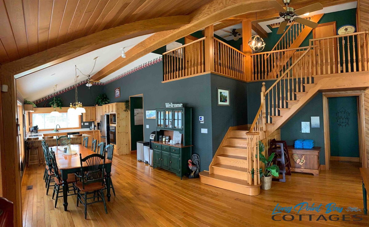 Casa de campo familiar em LONG POINT, acomoda 12-15, doca/praia