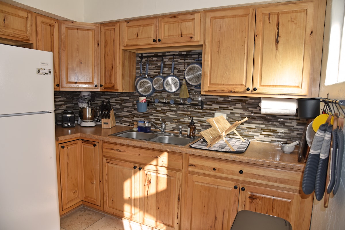Este espaço acolhedor possui sol natural e brilhante e todas as comodidades para tornar sua estadia uma brisa. Faça uma xícara de café na cozinha completa e desfrute-a no seu pátio privado, onde você pode tomar um pouco de ar fresco do Novo México assim que abrir as portas francesas. Localizado no coração do centro da cidade e a poucos minutos da Cidade Velha de Albuquerque e do nosso salão de comida artesanal, o Sawmill Market. É o lugar ideal para turistas, pessoas que estão aqui a trabalho ou para uma escapadinha a dois.