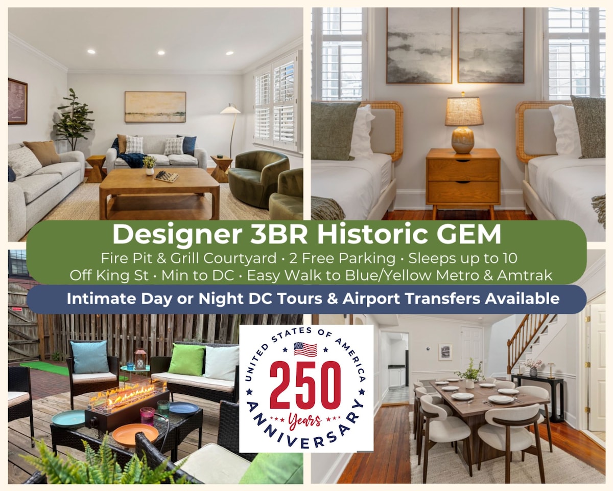 This historic home is located in Old Town Alexandria and within two blocks of King Street with onsite parking for 3 cars. Walk to restaurants, bars, shops, parks, and museums. The house has been modernized; the inside is comfortable and cozy. Fully furnished with amenities to make you feel right at home. This unique property offers a designer kitchen, work desk, two electric fireplaces, upgraded bathrooms, and outdoor space. The welcome package provides ideas for a fun stay.