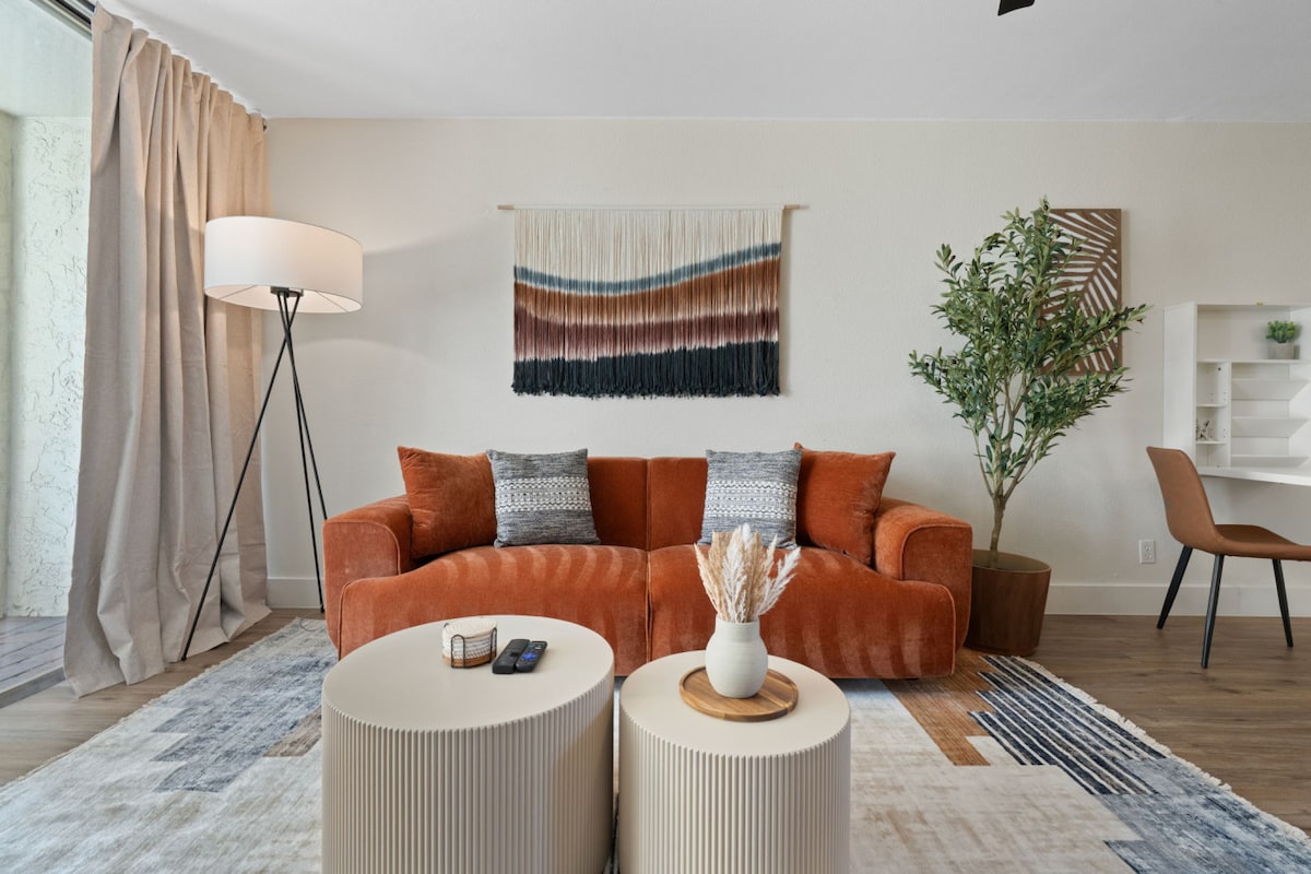 Desfrute da nossa elegante suíte atualizada no coração da cidade velha de Scottsdale. Este local de estreia fica a poucos passos da famosa Praça da Cidade Velha de Scottsdale. Aqui você encontrará uma fabulosa vida noturna, praça da moda e restaurantes incríveis. Nosso complexo oferece uma piscina aquecida profunda, banheira de hidromassagem grande, academia, churrasqueiras, sede do clube, mesas de bilhar e até mesmo pingue-pongue. Este é o estilo de resort vivendo no seu melhor! Máquina de lavar e secar roupa também estão no local! *Pergunte sobre estadias de mês a mês para um desconto*
