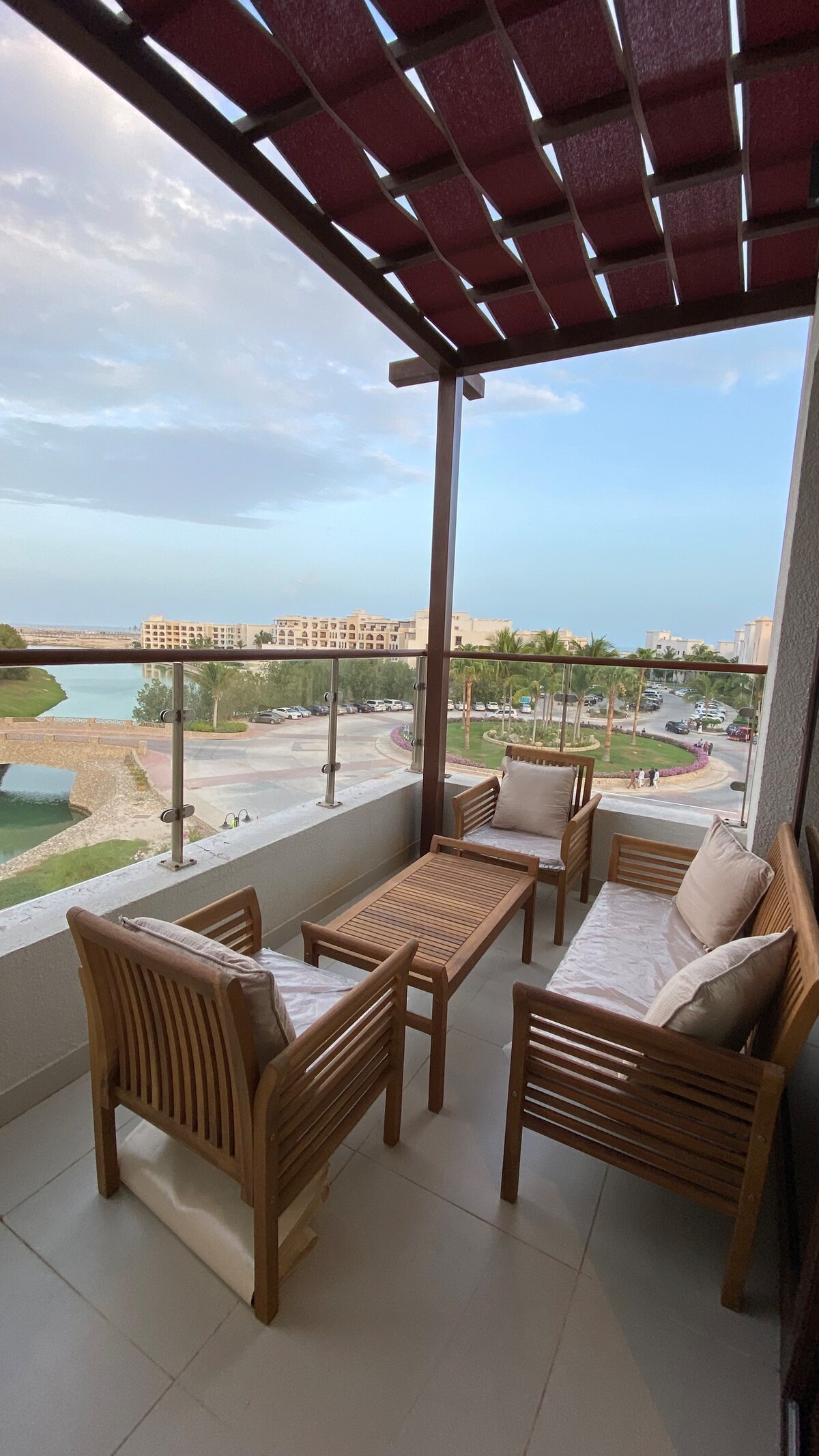 Apartamento de 5 estrelas localizado no HAWANA SALALAH Resort, Forest Island Lily at Salalah City, Omã ( Edifício NO 8 UNIDADE NO L8-102) ; Varanda com vista para o mar e para a lagoa e para o jardim. Nas proximidades Aquapark, hotéis de 5 estrelas Rotana & Alfanar, e Marina com Montanha,Vista Jardim. acesso Wi-Fi gratuito Ginásio ao ar livre e piscina com crianças área de jogo. 22 Km SalalahAirport, 5 Estrelas Apartamento apto para 2 Adultos e 2 Crianças, 1 quarto com cama queen size, 1 sala de estar com sofá-cama Cozinha aberta e completa, máquina de lavar roupa, banheiro