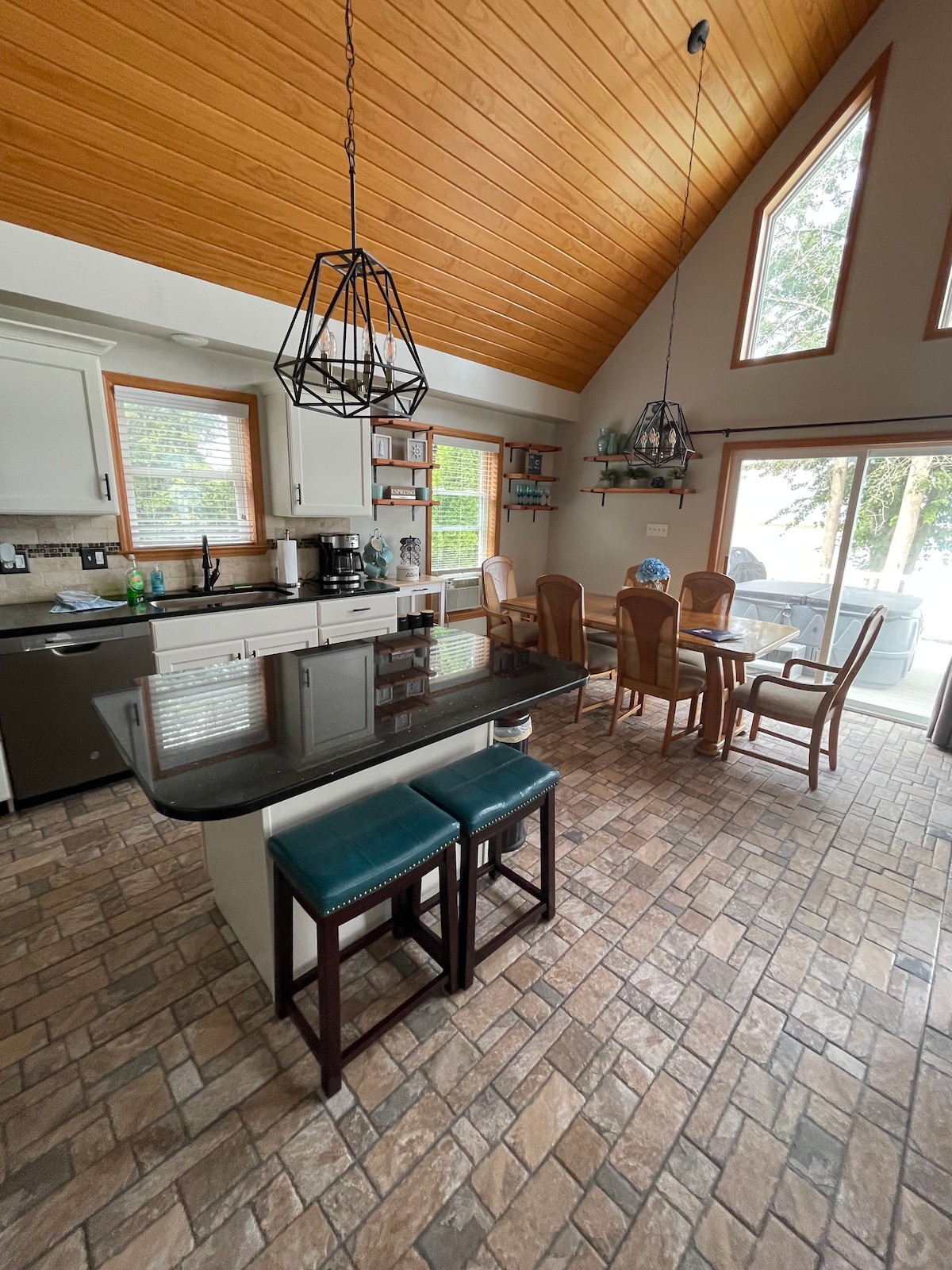 A Casa do Lago tem 1800 pés quadrados de relaxamento completo. Atracar o seu barco pessoal na parte de trás em 50 pés da bela Oneida Lake South Shore e sinta-se à vontade para usar o Paddle Board com colete salva-vidas, os caiaques com remos ou as varas de pesca fornecidas para uso dos hóspedes. Prepare refeições maravilhosas na cozinha totalmente equipada ou na churrasqueira a gás para comer fora ou dentro. Desfrute do cenário noturno no espaçoso deck ou na banheira de hidromassagem com amigos e familiares aguardando o espetacular pôr do sol da Costa Sul!