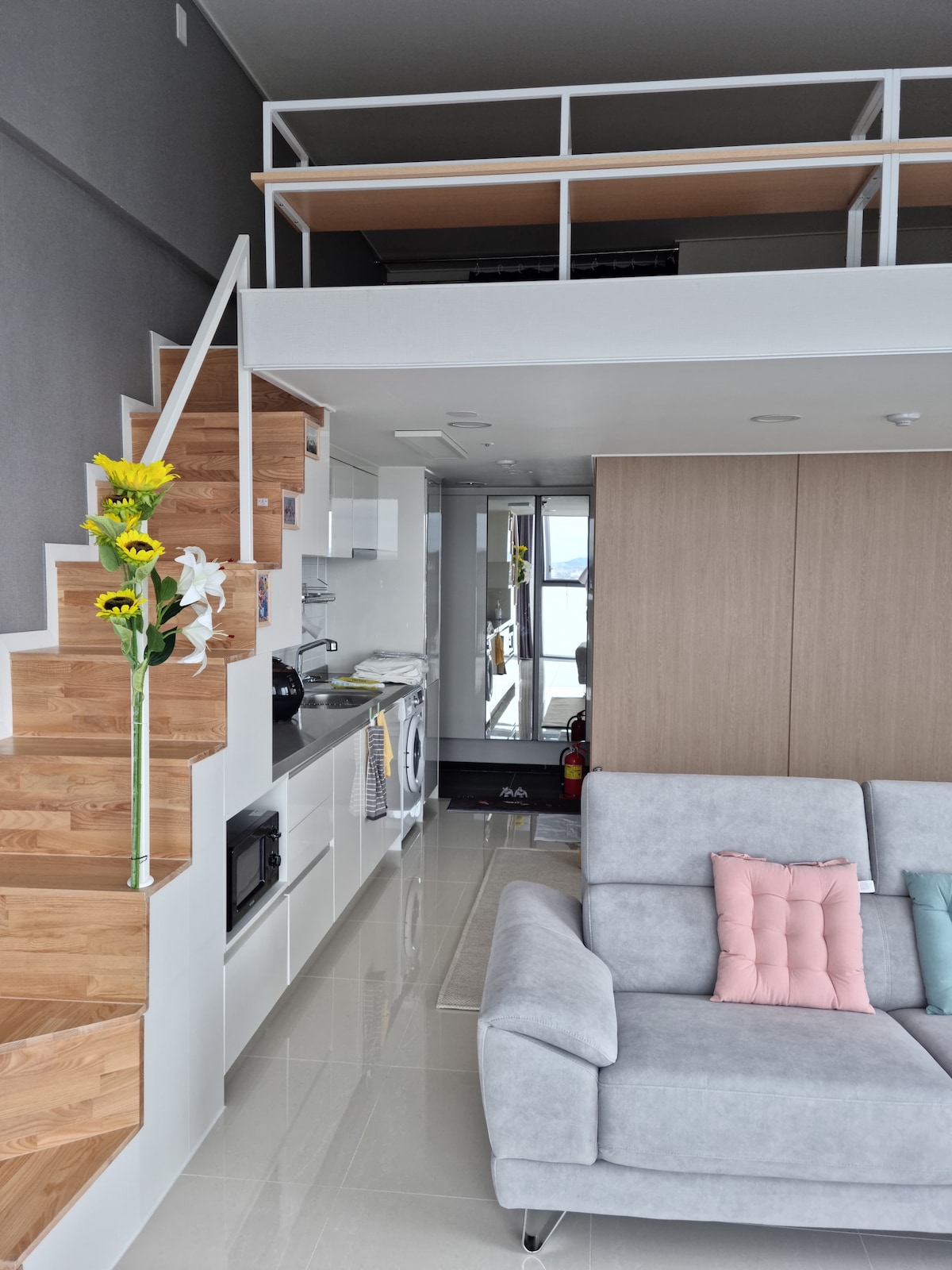 Há uma cama de hotel especial Simmons e uma cama de casal no primeiro andar, e duas camas de solteiro no andar superior. Coloquei um sofá grande para que você possa ficar confortavelmente. Equipado com LP e CD e player, DVD, etc. e Bluetooth Temos também alto-falantes. Netflix, etc. também estão disponíveis. Yeongjongdo é um lugar onde você pode ver o nascer do sol do Mar Ocidental pela manhã, caminhar até a bicicleta ferroviária durante o dia e ver a vista do mar à noite a partir do 18º andar. Como uma instalação de hotel, há uma academia gratuita, restaurante, bar de vinhos e espaço para animais de estimação. Quando você entrar neste lugar cheio de charme e personalidade, nunca mais vai querer sair.