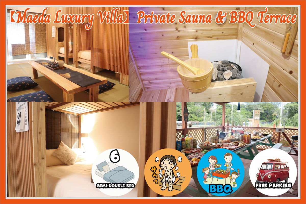 \開業1周年キャンペーン!/ 期間限定・特別価格でご案内中! お得なこの機会にぜひヴィラでゆったりステイを。 2024年12月オープン「MIRATIO Sirius(シリウス)」は、オーナーが一目惚れして購入した特別な棟。 心安らぐ空間とこだわりのデザインが光る、人気の一棟です。 最大12名様まで宿泊可能な新築プライベートヴィラ。周りを気にせず過ごせる一棟貸切スタイルで、ご家族やグループでのご利用にぴったりです。 【サウナ愛好家必見!】 心地よい熱波に包まれるロウリュウサウナ体験。ジャグジーでは空を仰ぎ、贅沢な癒しのひとときを。 【笑顔が広がる設備】 アウターリビングにはBBQコンロをご用意。ケータリングサービスやビールサーバーも有料でご案内が可能です。雨の日は、任天堂SwitchやNetflixでゆったりするのも◎ 充実したキッチンアメニティで、暑い夏はお子さまも喜ぶかき氷、寒い冬は室内でしゃぶしゃぶや鍋パーティーを楽しむのもお勧めです。 【歩いて出会う癒しの風景】 ビーチまで徒歩約10分。季節の自然と海山の絶景が、歩く時間さえも贅沢に彩ります。