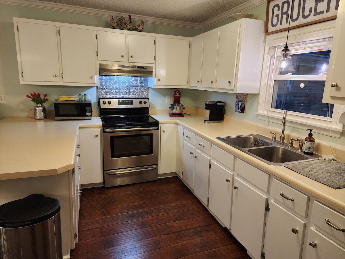 13 razões pelas quais você vai ❤ sua experiência familiar. ● A poucos minutos dos acampamentos do USMC, lojas, playground, splashpark e muito mais ● A cerca de 20 milhas de Emerald Isle e Topsail Beach ● Bairro tranquilo ● 2 vagas de estacionamento GRATUITAS ● Pátio privativo com mobiliário de exterior e jogos ● Quintal cercado ● Casa limpa de 1.000 pés quadrados ● Wi-Fi GRATUITO ● 3 TVs com Firestick, Roku+ Netflix ● Jogos divertidos para adultos e crianças, quebra-cabeças e brinquedos ● Cozinha/lavanderia totalmente equipada ● Lareira elétrica ● Berço portátil + cadeira alta disponível