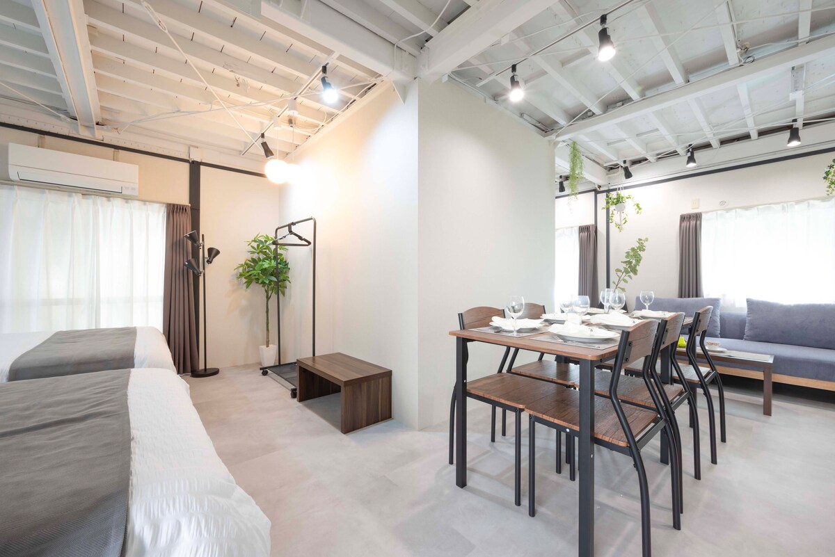 Relaxe nesta espaçosa casa moderna de 100㎡, localizada em uma área residencial tranquila. O espaço aberto e arejado possui interiores elegantes e pode acomodar até 8 hóspedes com duas camas semi-duplas e duas camas de casal. Apenas a 10-15 minutos a pé da estação mais próxima, com supermercados e ruas comerciais nas proximidades. Ótimo acesso ao centro de Tóquio: ・30 minutos da Estação de Tóquio ・23 minutos para Shibuya ・30 minutos para Shinjuku Um bairro seguro e confortável, perfeito para uma estadia relaxante.