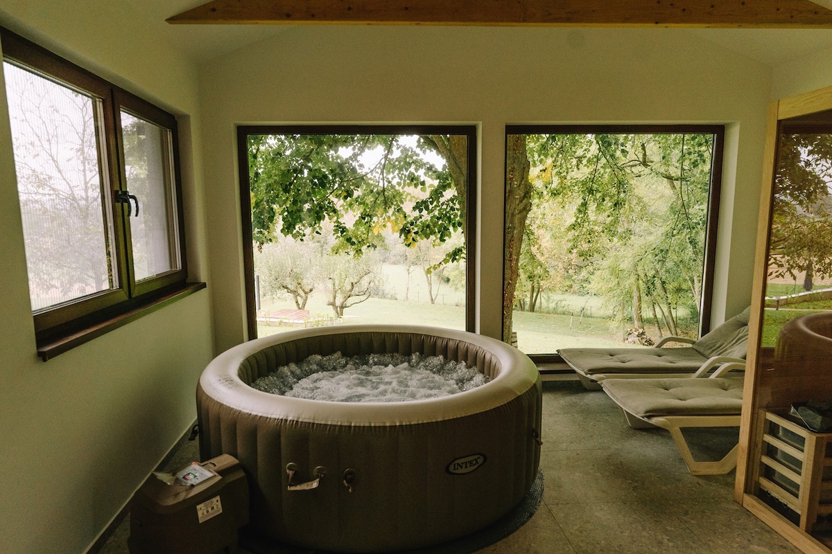 Aprecie a beleza da natureza e manhãs tranquilas com uma xícara de café de todos os cantos da casa. Distribuída em dois andares, a casa acomoda até 6 hóspedes. Para relaxar, oferece um canto de bem-estar com sauna panorâmica, banheira de hidromassagem e piscina ao ar livre (disponível de maio a setembro). A área externa inclui terraços para relaxar, grelhar ou preparar refeições tradicionais – perfeitos para reuniões familiares.