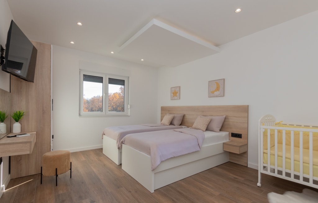 Discover Villa Lea-Makarska, a spacious and inviting retreat nestled in a serene forest setting, perfect for families and couples seeking a tranquil getaway. This stunning villa comfortably accommodates up to 12 guests across 5 beautifully appointed bedrooms, featuring a mix of queen-size and individual beds.<br><br>The villa boasts an impressive 6 bathrooms, including 3 with showers, 1 with a bathtub, and 2 additional toilets, ensuring ample space and convenience for all guests.