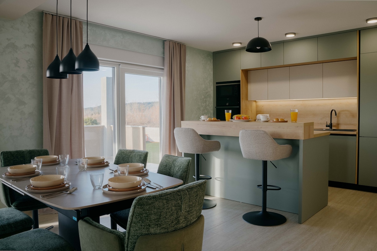 Harmoniosa e luxuosa - a elegante e atemporal vila KaLa em Krneza, perto de Zadar, vai conquistá-lo com o seu interior cuidadosamente arranjado feito de tons sutis de cor, que fluem através do interior desde a iluminação do teto até os painéis de parede, e vai tornar as suas férias únicas.