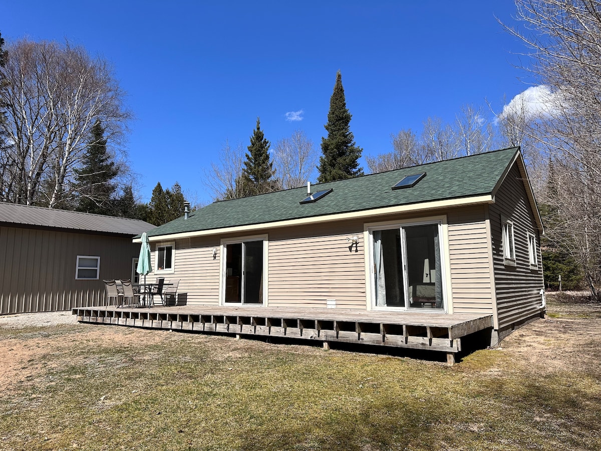 Paraíso incrível para pescadores. O acesso ao lago Burt do outro lado da estrada e o lançamento do barco fica a apenas 1/2 milha de distância. Muito estacionamento. Muito espaço no interior para se preparar para um dia no lago e para preparar refeições em família. Este lugar é ideal para famílias de pescadores humildes que procuram uma cama quente, chuveiro quente, boa refeição e um ótimo momento na floresta! Estamos fora do caminho batido, a 15 minutos da cidade. Temos Wi-Fi de alta velocidade, mas o serviço de celular pode ser irregular. Lugar perfeito para desligar os eletrônicos e fugir!