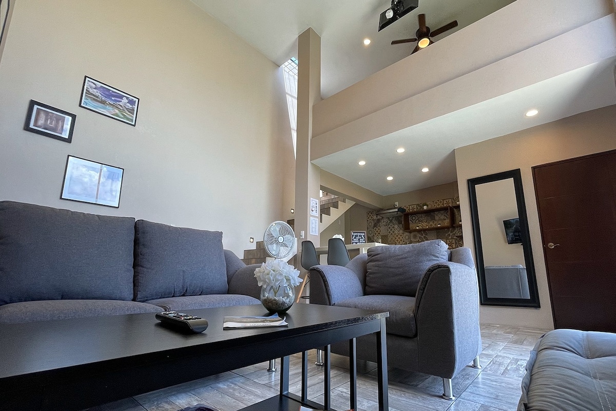 Vive una experiencia exclusiva en Loft SoleMio, moderno, con diseño y estilo en Orizaba. Su doble altura crea un ambiente amplio, sofisticado y acogedor ideal para descansar. Cuenta con jardín, estacionamiento y espacios equipados para máximo confort. Ubicado a minutos del centro histórico, restaurantes y atractivos turísticos. Perfecto para familias o grupos que buscan comodidad, ubicación y elegancia en un solo lugar. Disfruta una estancia única con todo lo necesario para tu descanso ideal.