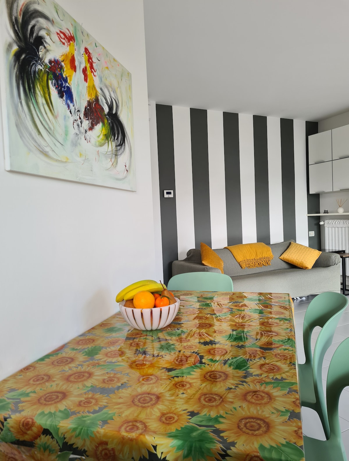 Elegante appartamento nella città di Bollate. Ottima posizione, vicino ad un grande Supermarket, alla fermata dei Bus e a 2 km da quella dei treni, che collegano con la Metro e permettono di raggiungere il centro in 30 minuti. L'appartamento si compone di un ampio e moderno soggiorno con cucina a vista completamente bianca due sgabelli con piano snack e una consolle allungabile per cenare comodamente. Infine una camera ottimamente attrezzata. Numero di registrazione IT015027C2HJ78TLYS