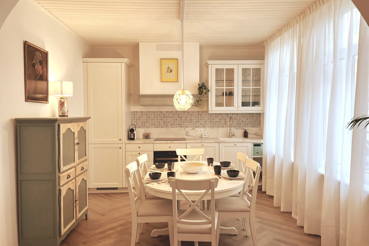 🌿 "Venha desacelerar e saia pronto para se levantar novamente"✨ Bem-vindo ao FORTUNA, um apartamento de patrimônio encantador e luxuoso no coração de Ostende, aninhado na histórica Galeria James Ensor. Construída por volta de 1890 e completamente renovada em 05/2025, a FORTUNA combina elegância com conforto contemporâneo. Com seus tetos de 3 metros de altura, detalhes autênticos e cores suaves e relaxantes, é a base perfeita para férias na praia, uma estadia romântica ou uma viagem cultural à cidade.