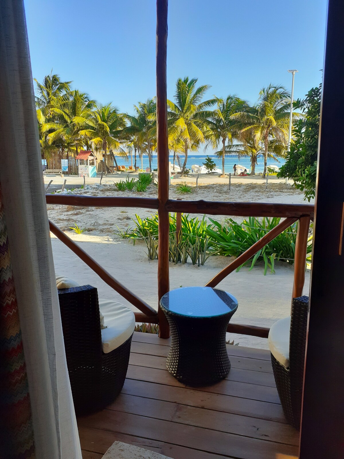 Desfrute de um quarto Suíte em planta baixa, totalmente de madeira com duas camas tamanho Queen muito confortáveis, varanda com sillones e bela vista para o mar. Ubicada a tan solo 20 passos do paradisíaco mar caribe de Mahahual. A habitação tem banho privado com água quente, ar condicionado, frigo bar e cafeteria. Também contamos com caixa de segurança e Wi-Fi em todo o alojamento.