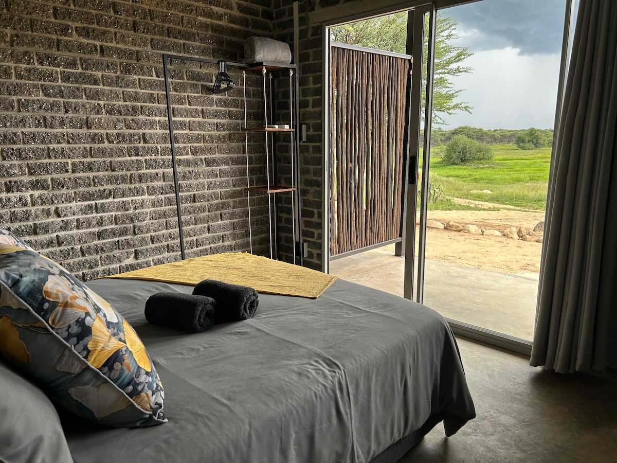 A new class of luxury self-catering accommodation: Skip the crowds, have the luxury of space, stay in a sustainable house, take all the memories with you, leave nothing but footprints. Your private home is nestled in 100Ha of African bush. From your patio, on the walking trail or even from a comfortable hide, you will have the opportunity to experience, observe, encounter and to photograph its wildlife. A perfect beginning or superb ending journey to your safari in Namibia. Proxima Natura.