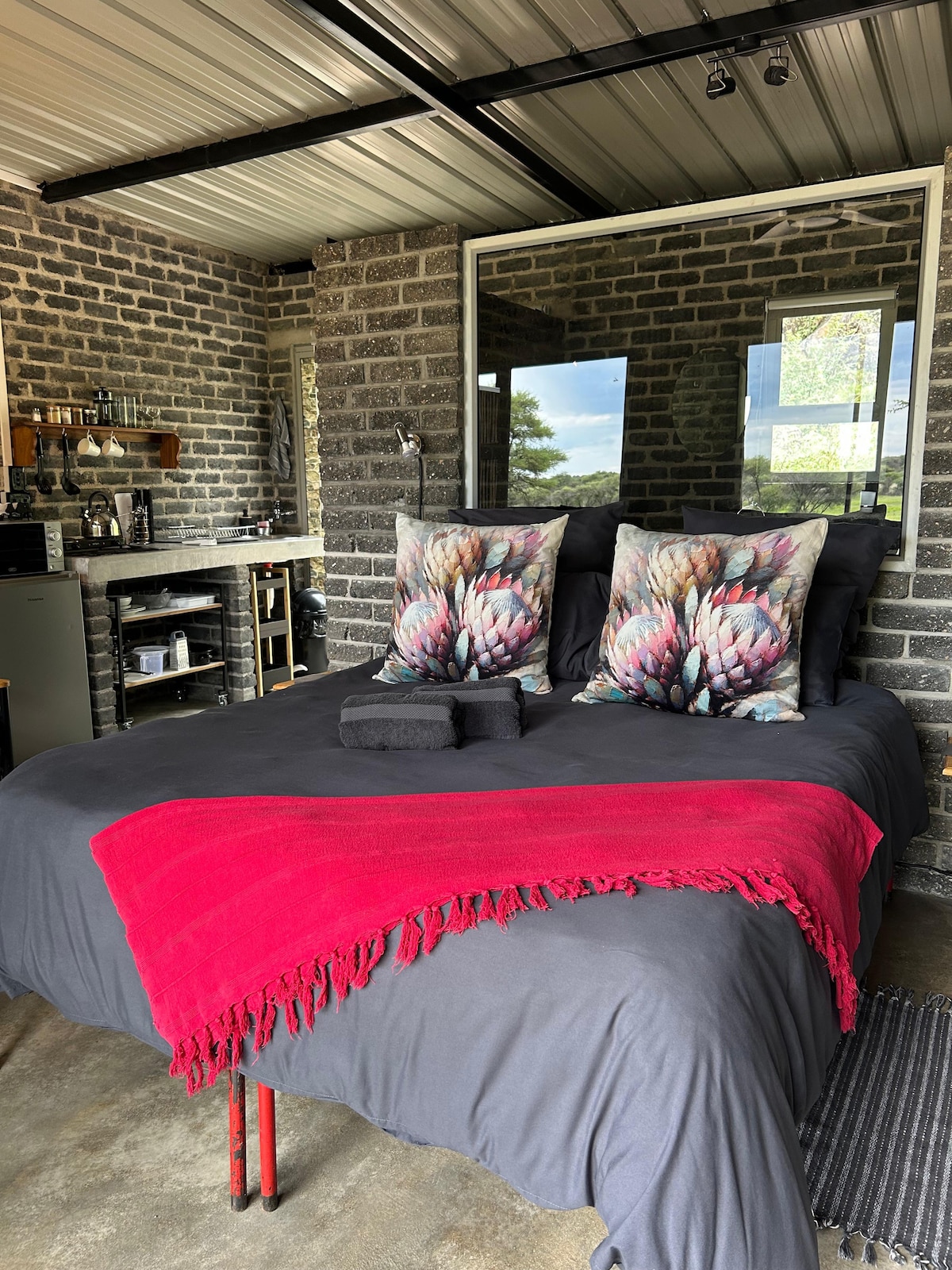 Wake up to breathtaking sunrises over the Erongo Mountains in the Quartz Suite, where a fresh green theme brings nature indoors. This one-bedroom retreat combines comfort with style, featuring a modern kitchen, cozy lounge, and private bathroom. Step onto your balcony for morning coffee, unwind in the braai area, or enjoy peaceful evenings with free Wi-Fi. Whether you’re here for work or leisure, the Quartz Suite offers the perfect blend of relaxation and convenience in the heart of Karibib.