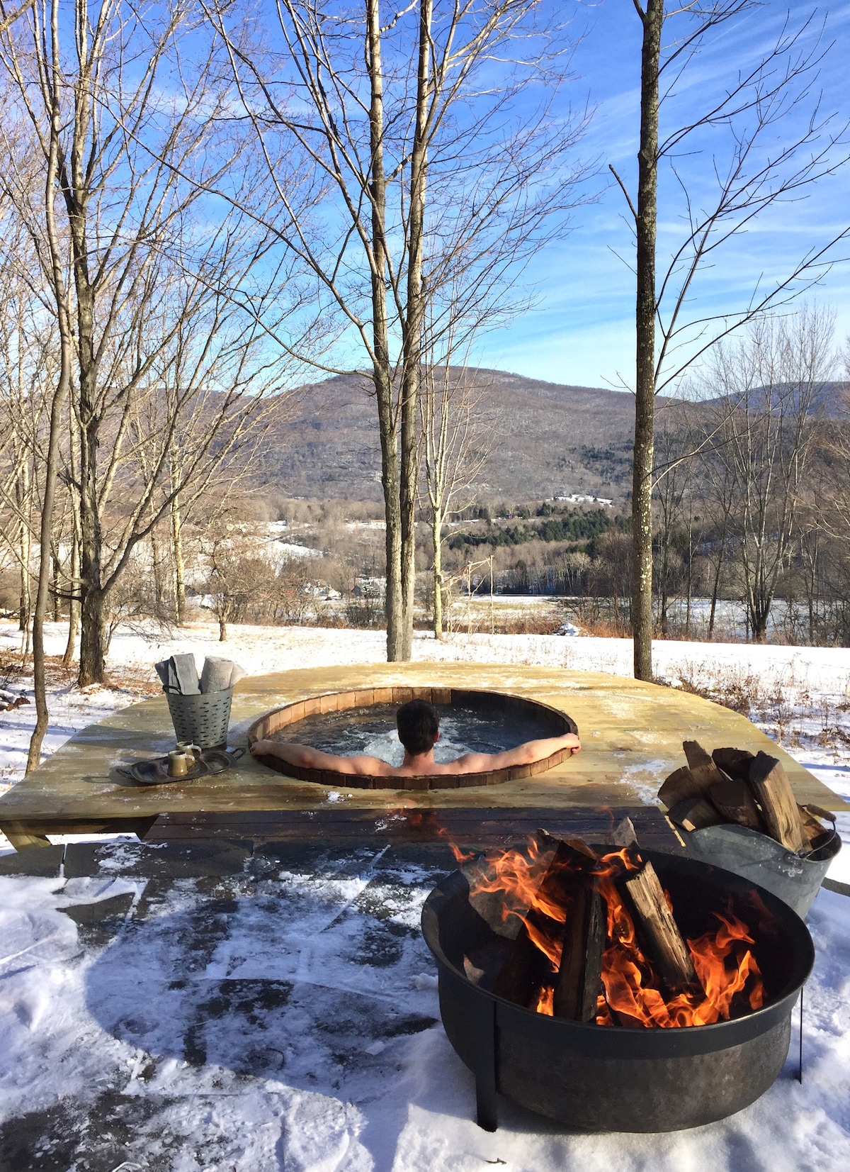 Situada na serena floresta de Saugerties, NY, esta luxuosa cabana com estrutura em A oferece conforto moderno e beleza natural. A apenas 10 minutos de Woodstock e 2 horas de Nova York, NJ. Fica em um lote privado de 2 acres. Acesso fácil. Com colchões Casper queen premium, uma máquina de café expresso Breville, um projetor 4K, uma lareira, churrasqueira, uma banheira de hidromassagem a lenha de cedro e sauna. Adequado para cães! Um retiro aconchegante e elegante perto de caminhadas, esqui e os melhores restaurantes em Catskills. Visite nosso Instagram "highwoodsaframe" para mais!
