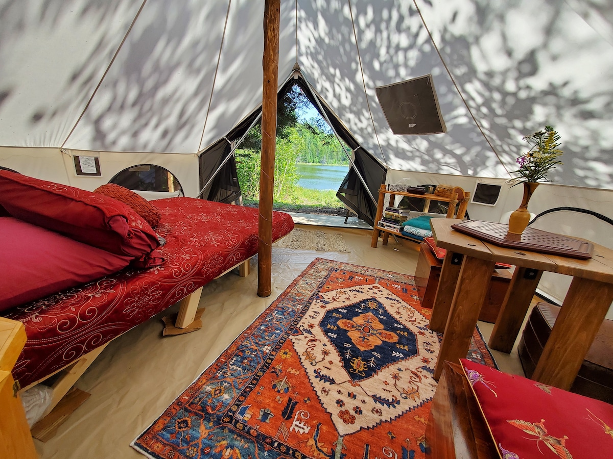 Tenda de luxo de 19 pés em 32 acres com acesso ao lago