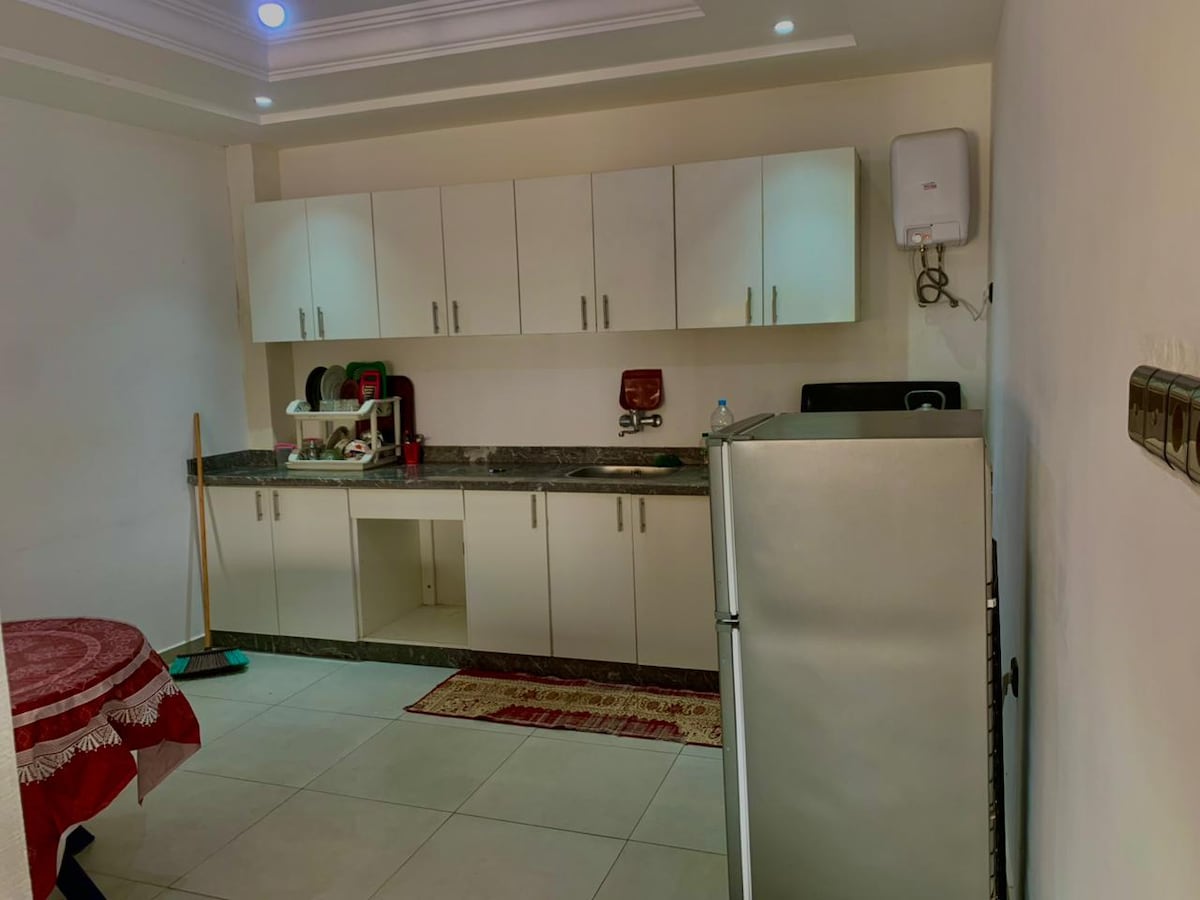 Relaxe, você não vai perder espaço nesta acomodação espaçosa. Os apartamentos têm 2 quartos, uma sala de estar e um banheiro, uma cozinha e no primeiro andar e apenas para famílias e casais casados e a certidão de casamento é obrigatória para casais marroquinos e a 5 minutos da praia com boas-vindas de carro