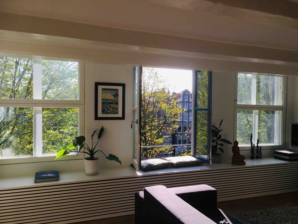 Apenas desfrute de tomar café da manhã com vista para o canal e os barcos flutuando, a alguns metros de distância... Desfrute de seu próprio alojamento, sua própria sala de estar, quarto e banheiro, no seu próprio andar. Você terá total privacidade. Várias vezes eleito o canal mais bonito de Amsterdã, é central para tudo o que você quer visitar, mas tão adorável e calmo.