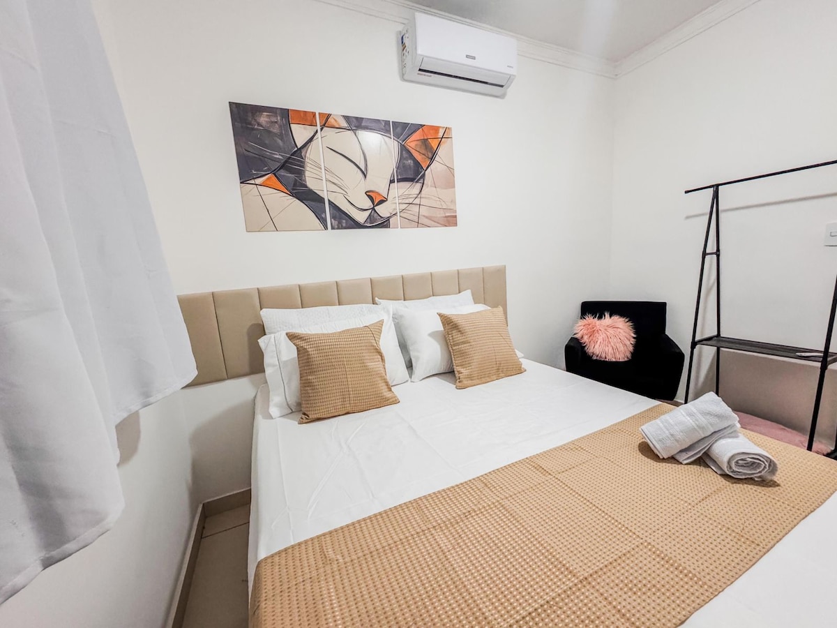 Apartamento recém reformado, localizado na região central, equipado com tv a cabo, internet, microondas, geladeira, cooktop, todos os utensílios de cozinha, cama box de casal e colchão de solteiro adicional, ar condicionado, máquina de lavar roupas, em frente à farmácia e loja de conveniência, próximo a bares, restaurantes, supermercados e comércio. Estacionamento ao lado (nao incluso na diária)
