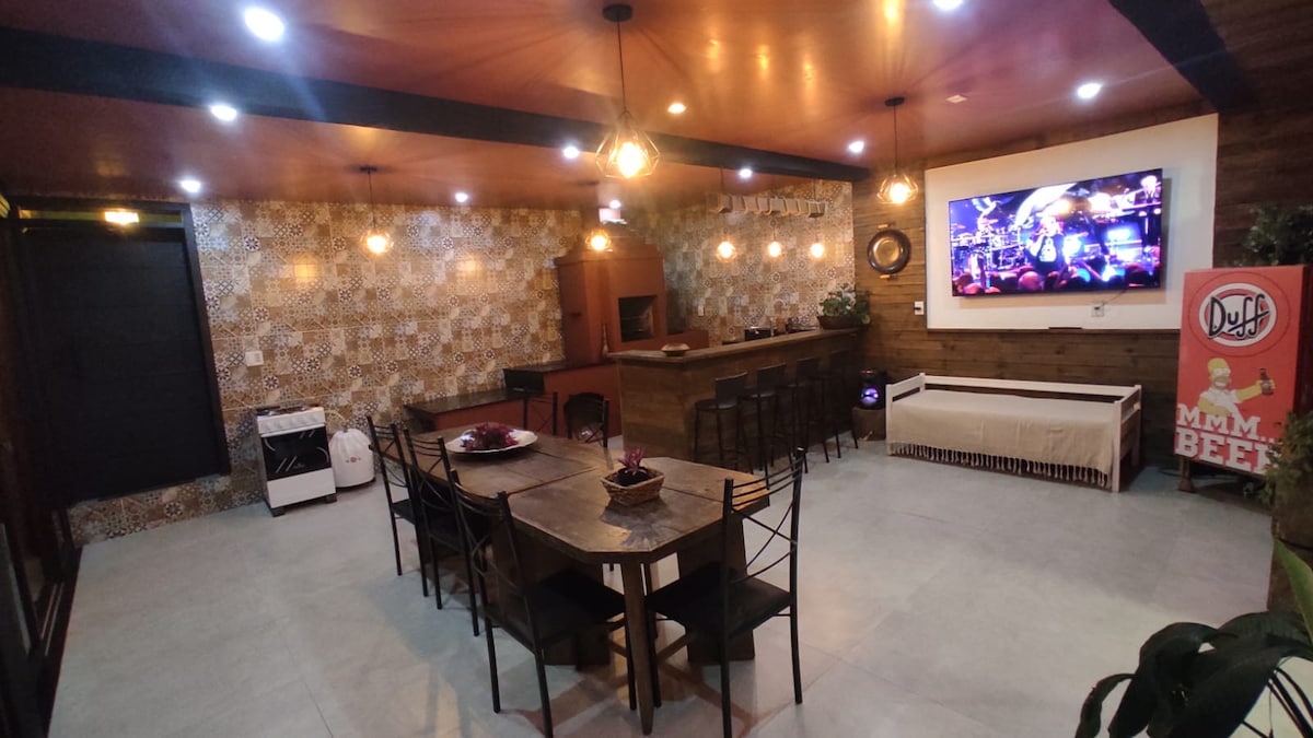 Casa ampla, com 5 quartos (sendo 3 suítes) 4 banheiros e 3 lavabos, sala de estar com lareira, sala de jantar ampla, academia, espaço gourmet completo com eletrodomésticos modernos e churrasqueira, piscina coberta com aquecimento solar, sauna e lavanderia. Acomoda confortavelmente 12 hóspedes, pois além dos quartos, possui sala com sofá-cama para 2 pessoas. Enxoval novo e de luxo. Localizada em bairro nobre, próximo ao centro histórico e em frente ao Parque das Candeias. Garagem para 3 carros.