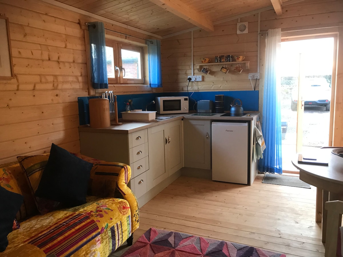 Relaxe e relaxe nesta escapadela única e tranquila, localizada em uma pequena vila agrícola histórica que tem a sensação de estar no meio do nada, mas fica a poucos minutos da cidade mercantil local e de outras atrações turísticas populares bem conhecidas, incluindo Iron Bridge e Shrewsbury. Traga suas botas de caminhada para uma caminhada pela icônica Wrekin Hill. Sua cabana de madeira está localizada em nosso jardim, você tem seu próprio espaço, pátio, lareira e churrasqueira, mas você também pode usar nosso jardim.