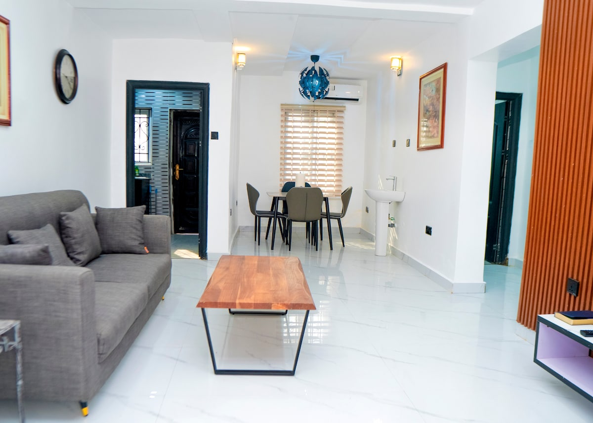 Welcome to your cozy and peaceful getaway! This stylish apartment offers a calm and cool environment designed for relaxation and comfort. Whether you're visiting for work, a short stay, or a weekend escape, this space provides everything you need to feel at home. Our facilities include 24-hour power supply, high-speed Wi-Fi for guests, and CCTV surveillance for enhanced security. The environment is peaceful and designed to provide maximum comfort during your stay.