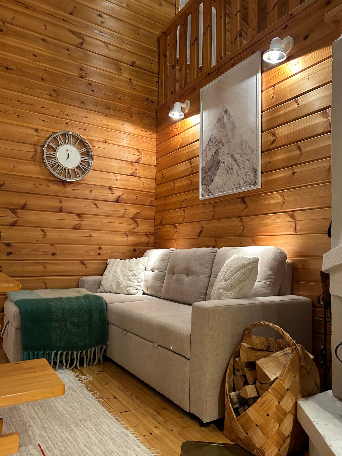 Tunnelmallinen mökki Levillä, takka ja sauna