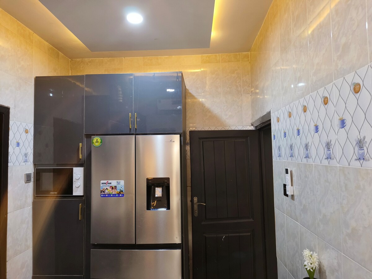 It's a two-bedroom flat in one of Ibadan's most secure and peaceful neighborhoods. You can feel the quiet environment as soon as you enter the government-reserved area. It's a fully air-conditioned flat with a living room and a television. There are two rooms, each with a queen-size bed and a bathroom and toilet. A fully equipped kitchen with all necessary utensils ravailable. Power supply on standby. A cleaner and a security guard always hand to assist you with everything you require.