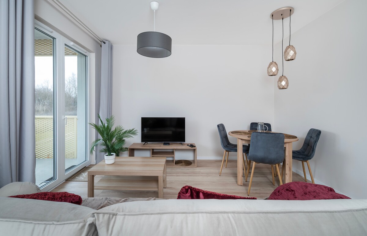 Localizado no centro - paz e conforto esperam por você. Apartamento de luxo com dois quartos, sala de estar, cozinha, banheiro e amplo terraço, equipado com tudo o que você precisa para uma estadia curta e longa. Em frente, há o centro Manufaktura com lojas, restaurantes, cinema, parede de escalada, academia. Parque da Cidade Velha 800m. Estacionamento gratuito em um condomínio fechado. Um excelente lugar para uma base de alojamento para explorar a cidade e para uma estadia de negócios.
