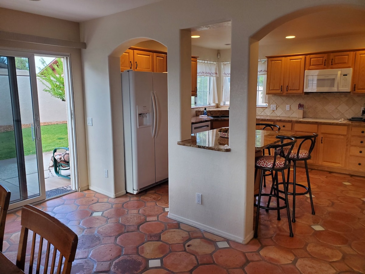 Esta casa de 4 quartos lindamente decorada está localizada a uma curta distância do centro de Page. Também fica do outro lado da rua de uma pista de caminhada / corrida, e a uma quadra de trilhas naturais locais. O quintal é totalmente cercado, então fique à vontade para trazer seu cão, e o grande lote/portão deixa espaço para estacionar seu barco. Há também estacionamento adicional na rua. O quintal é muito sereno e bem conservado com algumas árvores frutíferas, então fique à vontade para desfrutar de algumas ameixas frescas, peras ou cerejas, dependendo da estação.