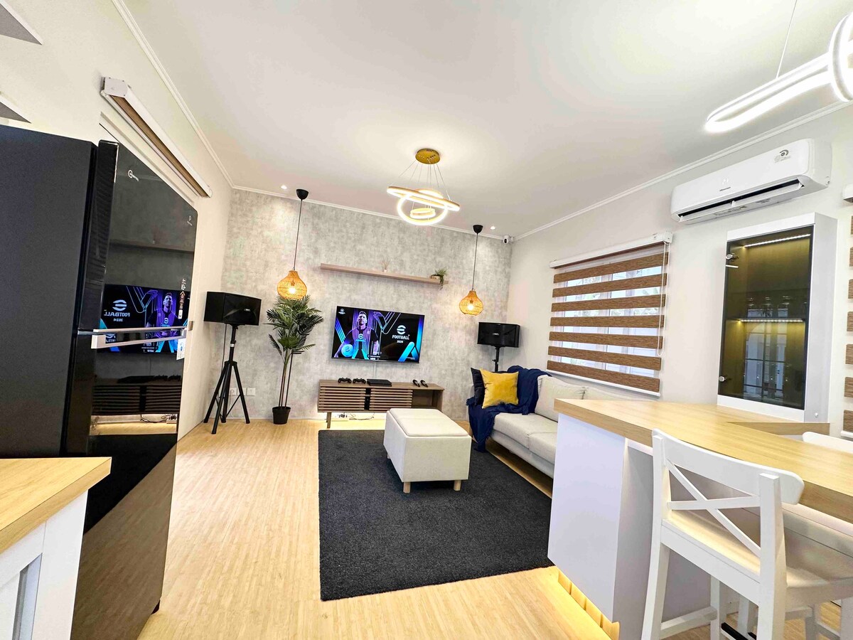 Localizado na torre Roseville, este duplex espaçoso é um dos apartamentos mais luxuosos do BSD. A unidade de 95 metros quadrados oferece comodidades contemporâneas, incluindo uma cozinha, Wi-Fi de 100 Mbps, uma TV de 75 polegadas e uma mesa com vista panorâmica do horizonte. Localizado no CBD, fica a uma curta distância a pé de restaurantes, bancos e shopping Teras Kota, e a poucos minutos de carro do The Breeze, shopping AEON, ICE. Os hóspedes também podem desfrutar da piscina olímpica, lounge com mesa de bilhar, academia, minimart, creche e lavanderia.