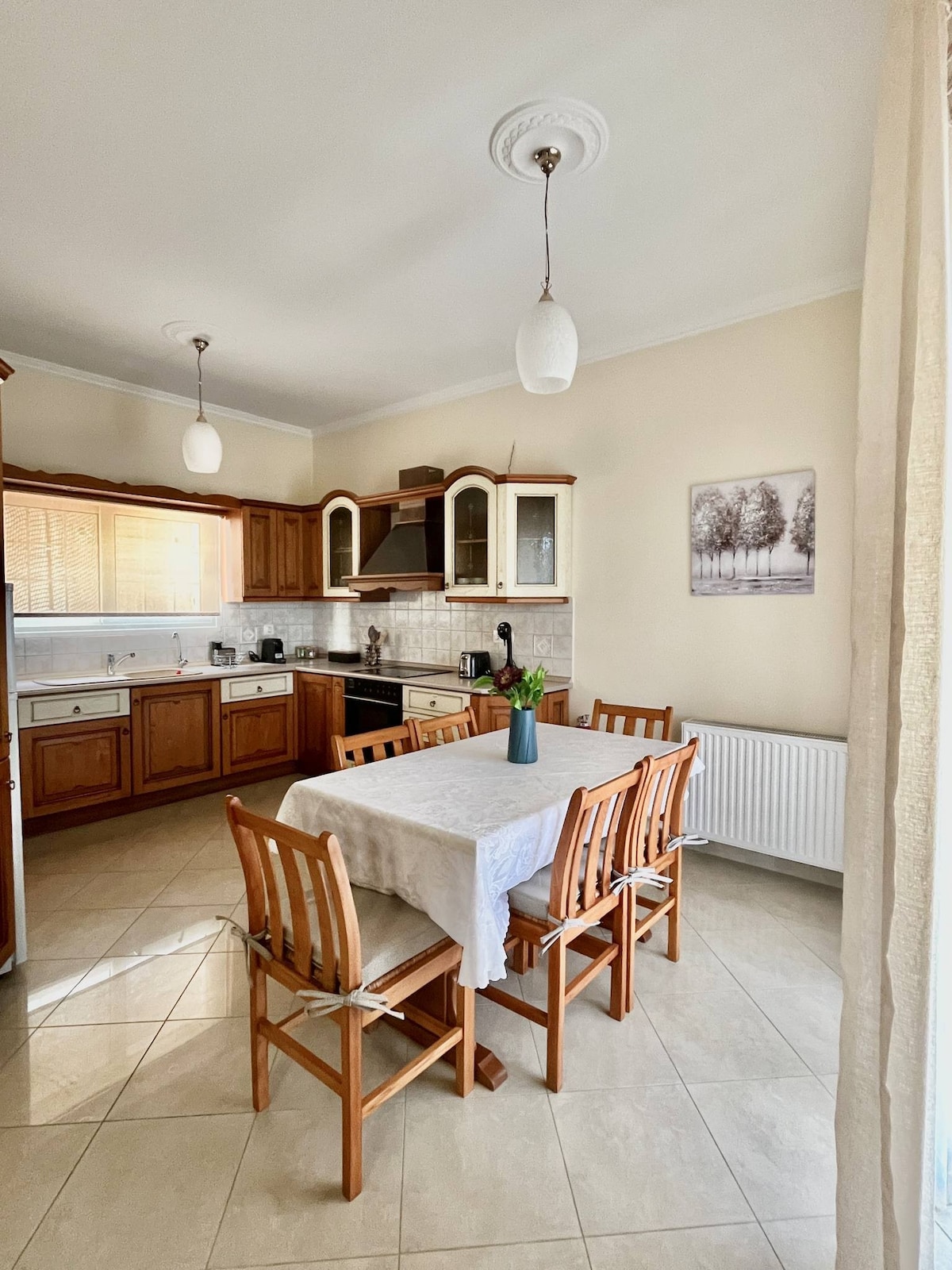 The house consists of large, bright spaces with 2 bedrooms with balconies and windows with sieves. Both bedrooms are fully airconditioned and with a large closet to match. One spacious sitting room with a dining room along with the kitchen which is fully equipped. The house has a large balcony with a magnificent view of the Aegean Sea and the Nautical Museum. There is also a large bathroom with all the comforts, with washing machine and dryer. And finally , the house is equipped with Netflix.