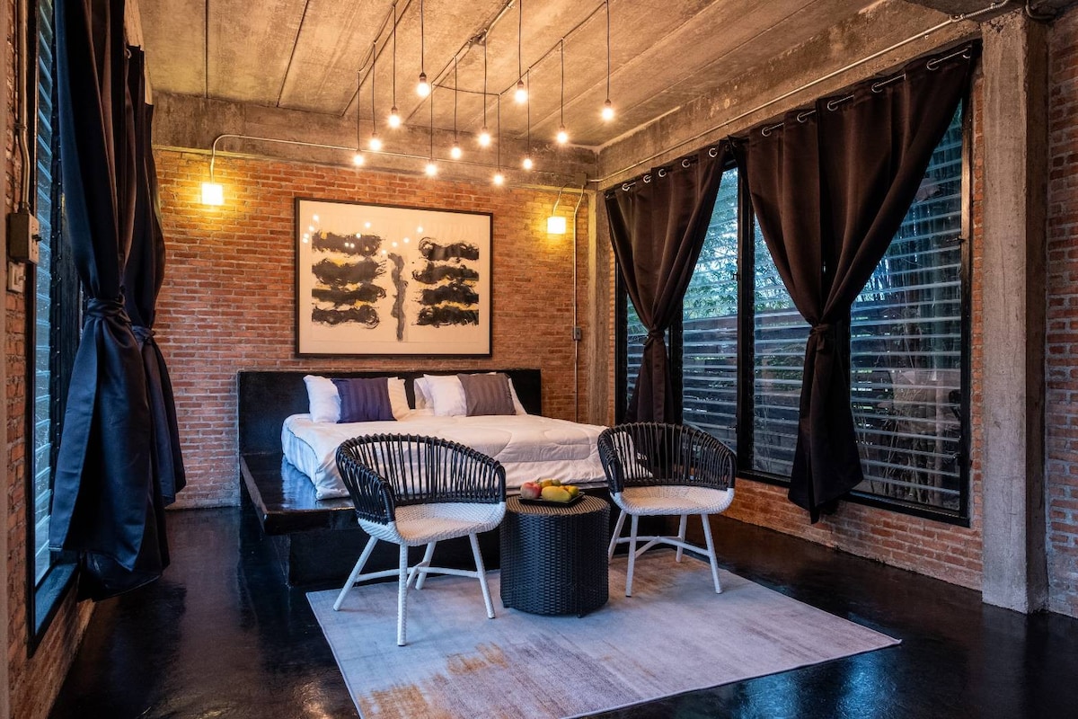 Experiência elegante em "This 'n That: Stay" Um apartamento de design com curadoria de artistas locais de Pai. Este apartamento de um quarto combina estilos de meados do século, retrô, upcycle e contemporâneos com um toque artístico da nossa própria galeria. Totalmente mobiliado com sofá grande, smart tv com Netflix e spotify, geladeira de tamanho completo, cama king size e etc. Cada canto foi projetado para inspirar calma, criatividade e conexão. Tudo a poucos passos da Walking Street de Pai, cafés e tudo o que você precisa para suas férias