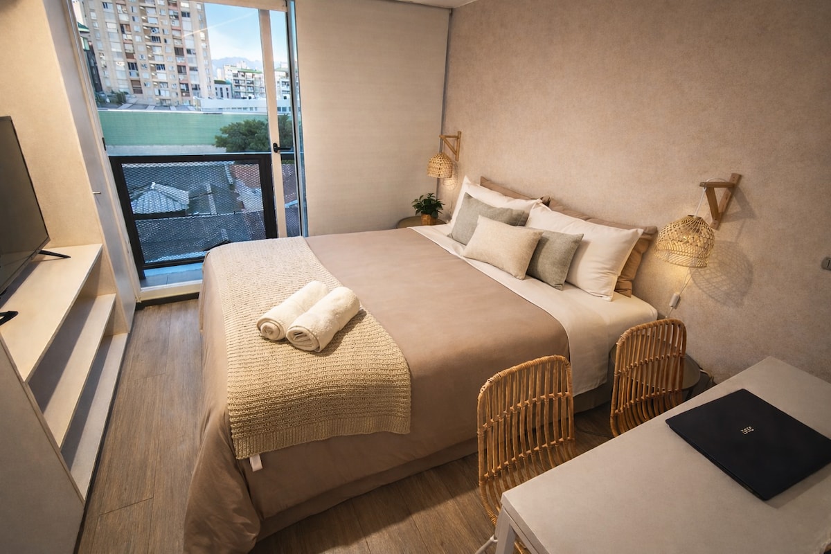 Este apartamento é como um descanso suave no meio de Santiago: novo, moderno e com um pequeno terraço onde a cidade parece mais amigável. Seus espaços iluminados convidam você a descansar, a acordar lentamente, a desfrutar do silêncio. E quando você sai, o local lhe dá a magia dos arredores: cafés, museus, praças, centros de eventos e cantos cheios de história a poucos passos de distância. Viva aqui, explore nas proximidades e surpreenda-se com cada detalhe. ✨️❤️
