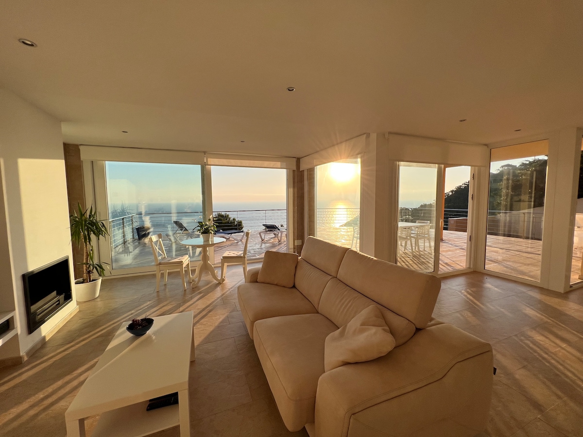 Vila de luxo à beira-mar de 380m2, com vista panorâmica deslumbrante para o mar e piscina de água salgada aquecida. EXCLUSIVAMENTE MOBILIADO com PRODUTOS RITUALS (SHAMPOO, GEL DE BANHO e SABONETE LÍQUIDO). Perfeito para uma escapada luxuosa e confortável perto da Costa Brava. Ótima opção para famílias e/ou amigos ficarem perto de praias lindas. Localizado em El Maresme, entre o norte de Barcelona e o início da Costa Brava. Número de RUA: ESFCTU00000811300049213200000000000000HUTB-063337-937