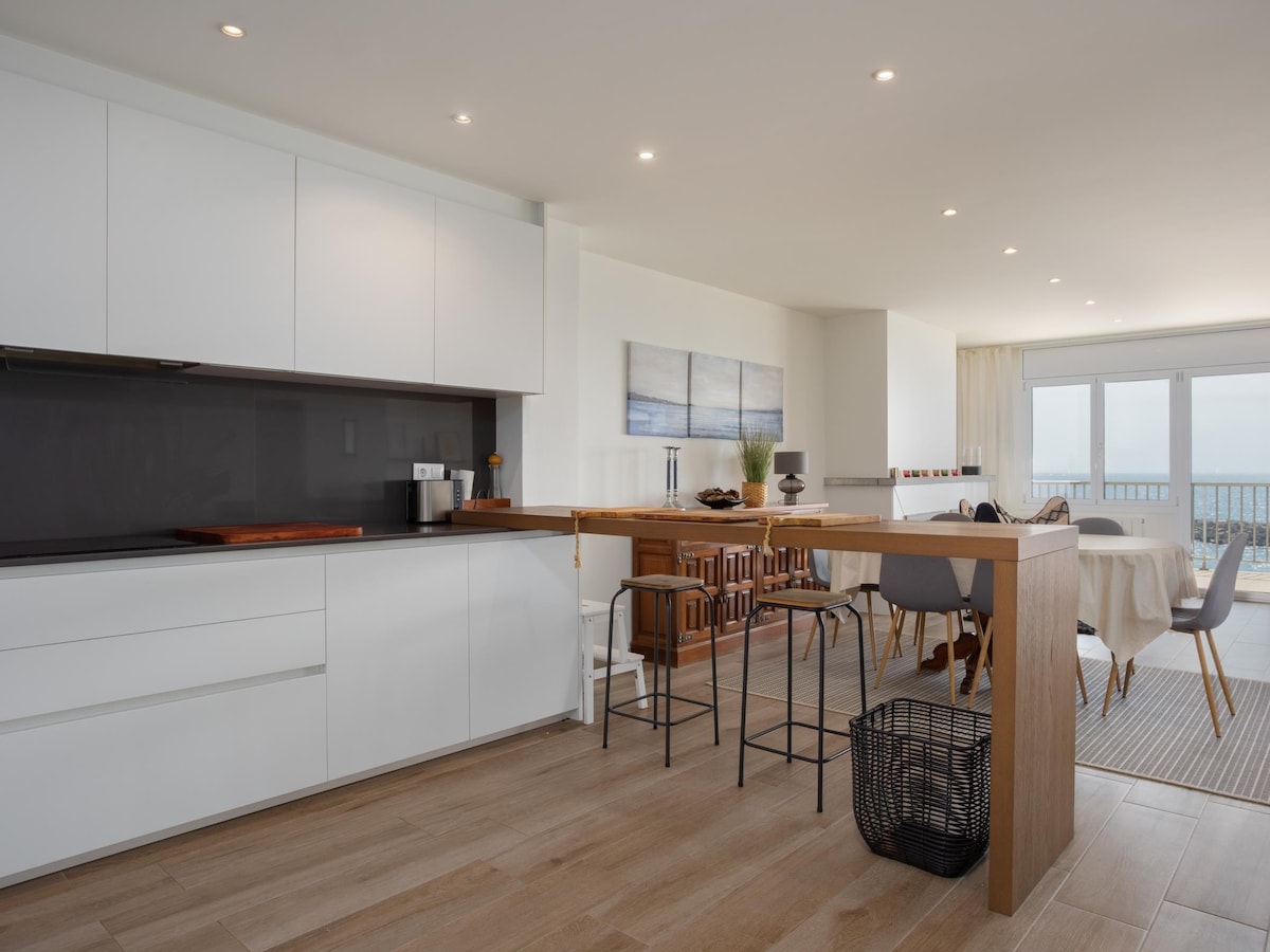 Incrível apartamento totalmente equipado com todos os detalhes de luxo e ótima decoração em frente ao mar. Ideal para famílias, amigos ou qualquer pessoa que queira desfrutar de férias incríveis com vistas imbatíveis para o Mar Mediterrâneo. A apenas 25 minutos do centro de Barcelona.