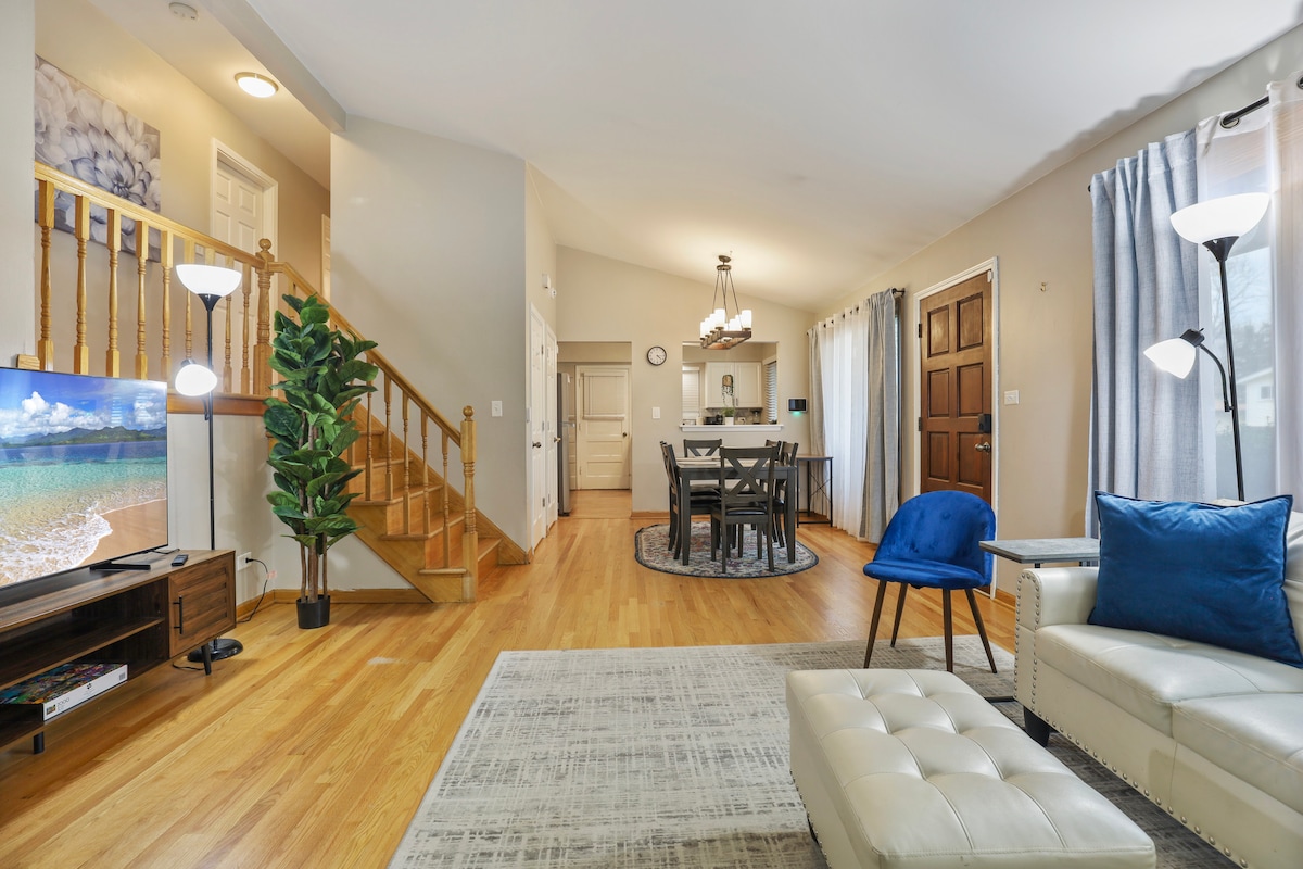 Desfrute de um rancho totalmente renovado em um bairro privilegiado, a poucos passos de restaurantes e lojas. Self check-in fácil com fechadura inteligente. A casa oferece 2 quartos, 1,5 banheiros, duas TVs e um espaço de trabalho dedicado. Mobiliário novo, uma cozinha totalmente abastecida e Wi-Fi rápido de 200 Mbps o tornam ideal para trabalho ou relaxamento. Lavadora e secadora incluídas. Comodidades ideais para famílias disponíveis mediante solicitação. A curta distância de carro do Aeroporto O'Hare, restaurantes, rodovias e do centro de convenções - perfeito para estadias de negócios e lazer.