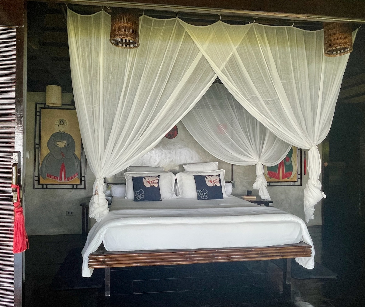 Linda casa de campo idealmente localizada a 30 m da praia de Corong-Corong. Design espaçoso, moderno e tradicional. Quarto espaçoso com ar condicionado silencioso, cama king size (2mx2m) e 1 cama de solteiro. Cama ao ar livre, sala de estar em plano aberto que leva a um grande terraço e parece um pequeno jardim privado. Banheiro amplo, chuveiro moderno com água corrente quente e fria, secador de cabelo. Ventiladores, TV a cabo, Wi-Fi, cofre, frigobar, café da manhã incluso e recentemente, piscina para todos vocês.