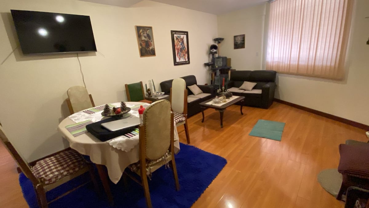 Apartamento novo e elegante localizado no coração de San Miguel (Centro de la Zona Sur) cercado por restaurantes e lojas. Tem instalações confortáveis e detalhadas. Dois banheiros, um quarto principal com uma cama queen e um sofá-cama na sala. Você vai adorar o conforto do lugar e sua área de trabalho. A limpeza é uma prioridade para nós