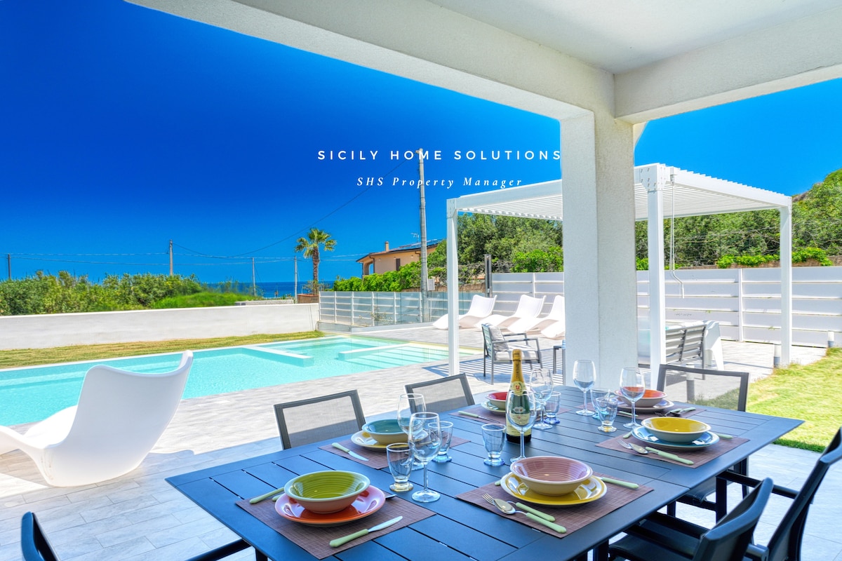 Cleo Villa Siciliana: vila com piscina e vista para o mar