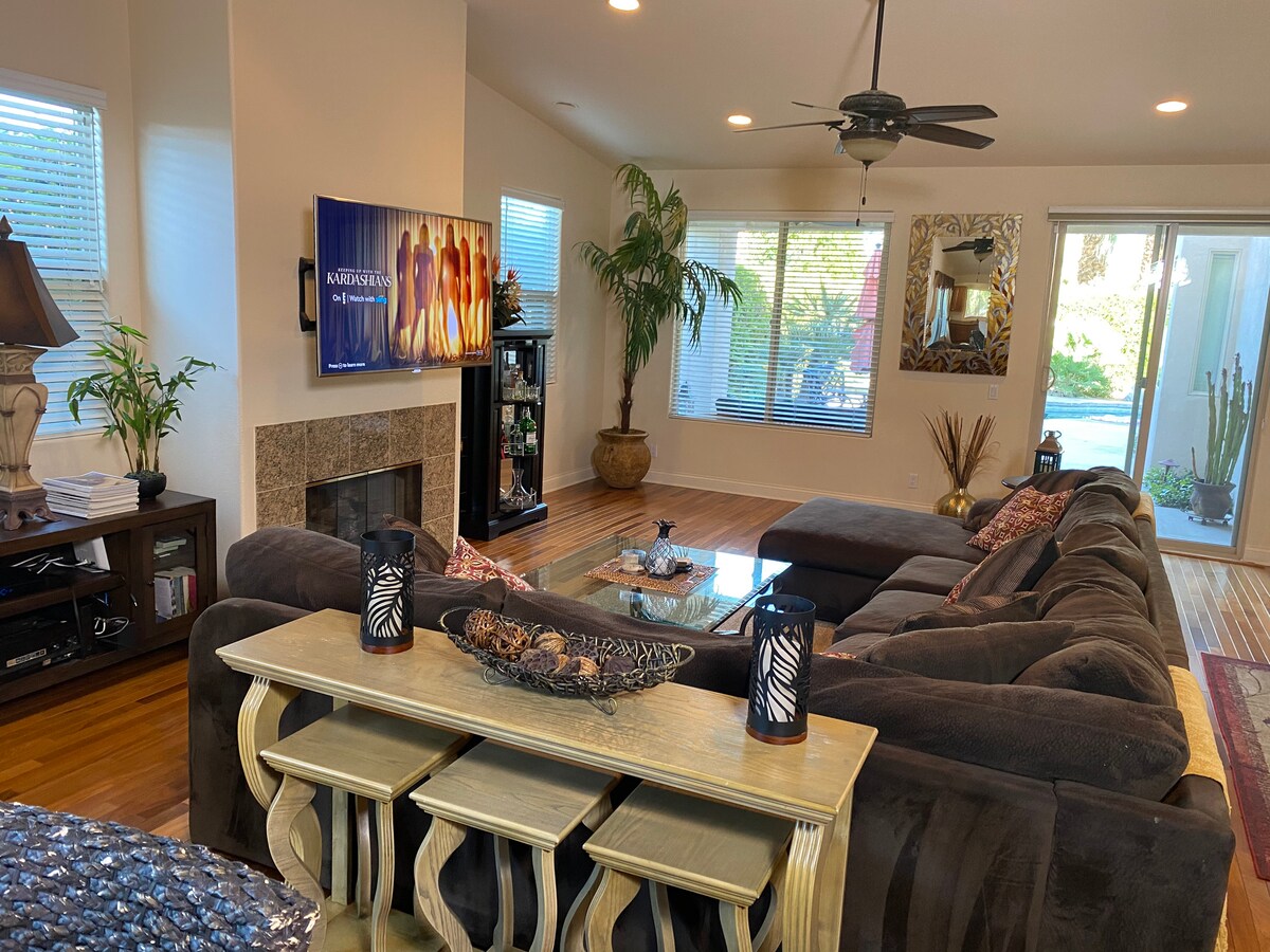 Deserto temático 2bd 3ba plus den/ office. 1900 sq. ft. Localizado dentro do Desert Falls Country Club. Acesso total a piscinas, academia, quadras de tênis e pickles. 5 min da nova Acrisure Arena e perto de vários cassinos, ótimos restaurantes e campos de golfe. Móveis novos, Smart TVs, cozinha totalmente abastecida, área de varanda, salão de jogos na garagem com mesa de pingue-pongue, dardos, fliperama de basquete, bicicletas para ele e para ela e 3 patinetes elétricos 🛴, berço portátil, cadeira de alimentação Animais de estimação bem-vindos por um adicional de $ 100 no check-in