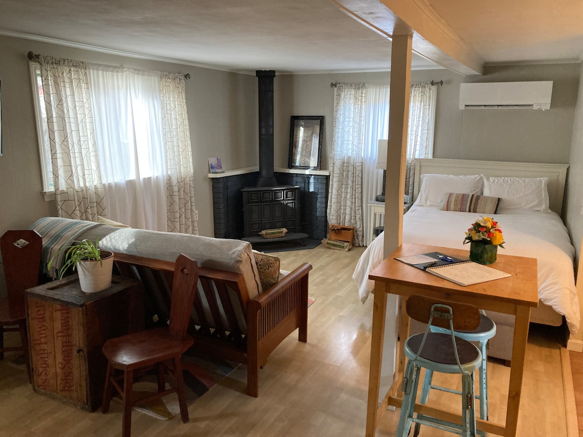 Quitinete aconchegante em um ambiente tranquilo e arborizado em Tolland, Connecticut — a poucos minutos da I-84 e a 15 minutos da UConn. Acomoda de 2 a 4 pessoas com uma cama queen size e um colchão opcional. Inclui cozinha completa, banheiro, Wi-Fi rápido, entrada privativa e self check-in fácil. Carregamento de veículos elétricos de nível 2 gratuito e muitas vagas de estacionamento. Ideal para estadias curtas ou prolongadas. Proibido animais de estimação, fumar, festas.
